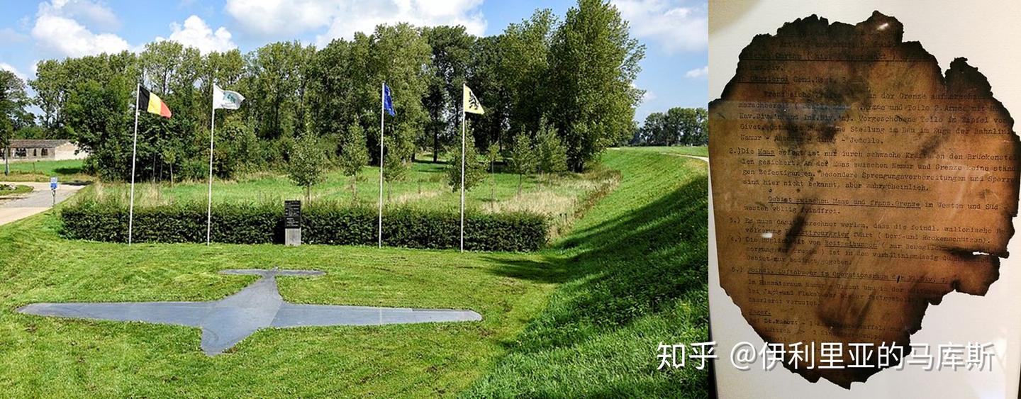今天比利时梅赫伦当地的纪念碑,右图是德军计划原版,部分被赖因贝格尔他们销毁