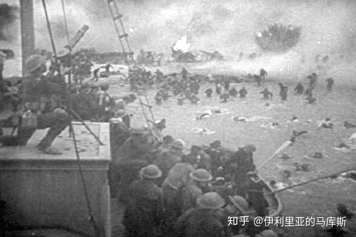 历史真实图片,英军在德军的轰炸下离开海岸游向救援船
