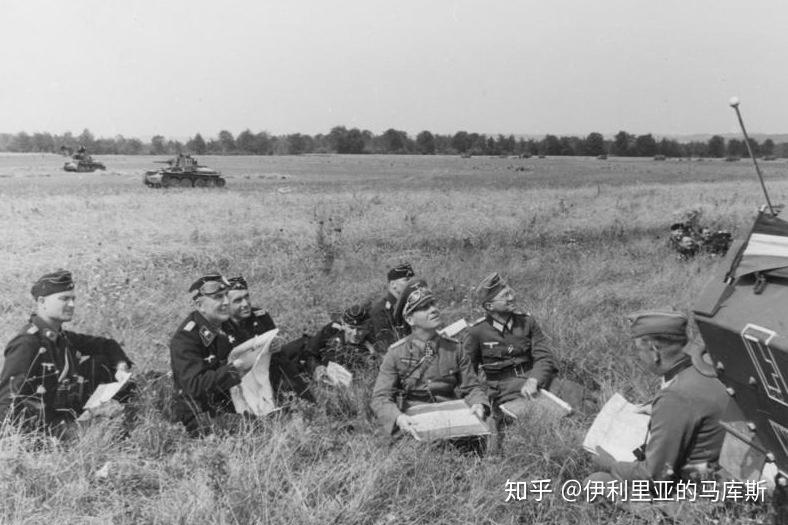 法国战役期间,隆美尔和他的第7装甲师的幕僚们在战地指挥行军
