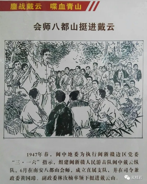 在永泰当地,流传蒋介石曾经在仙游往永泰的山间小路旁的山洞里留下一首行军诗,“吾领粤军南入闽,中华山川人未醒。日照卧石暖枕眠,月旰杲星旷路行。”这首七言绝句就刻在该石室中最大的一块石头上,字体硕大如斗,第一行的两个字“征途”,下面两行诗句在断句的地方还加有标点,有些字还是繁体字。但诗的落款,据说写的是‘蒋中正民国7年冬’,在上个世纪六十年代文革时被抹掉了。除诗文外,洞中还有一个石头垒起的简易灶,当地村民认为那是当年粤军留下的。这个名叫斧头山的地方,离蒋介石当年率兵占领的永泰县嵩口镇,也不过几十里路程。1918年12月底,仙游民军吴威易帜改投护法军,被宋渊源部委为护法军第二支队司令,并扩充民军,拥有人枪三千余,驻县城外南区俗称“外团”。