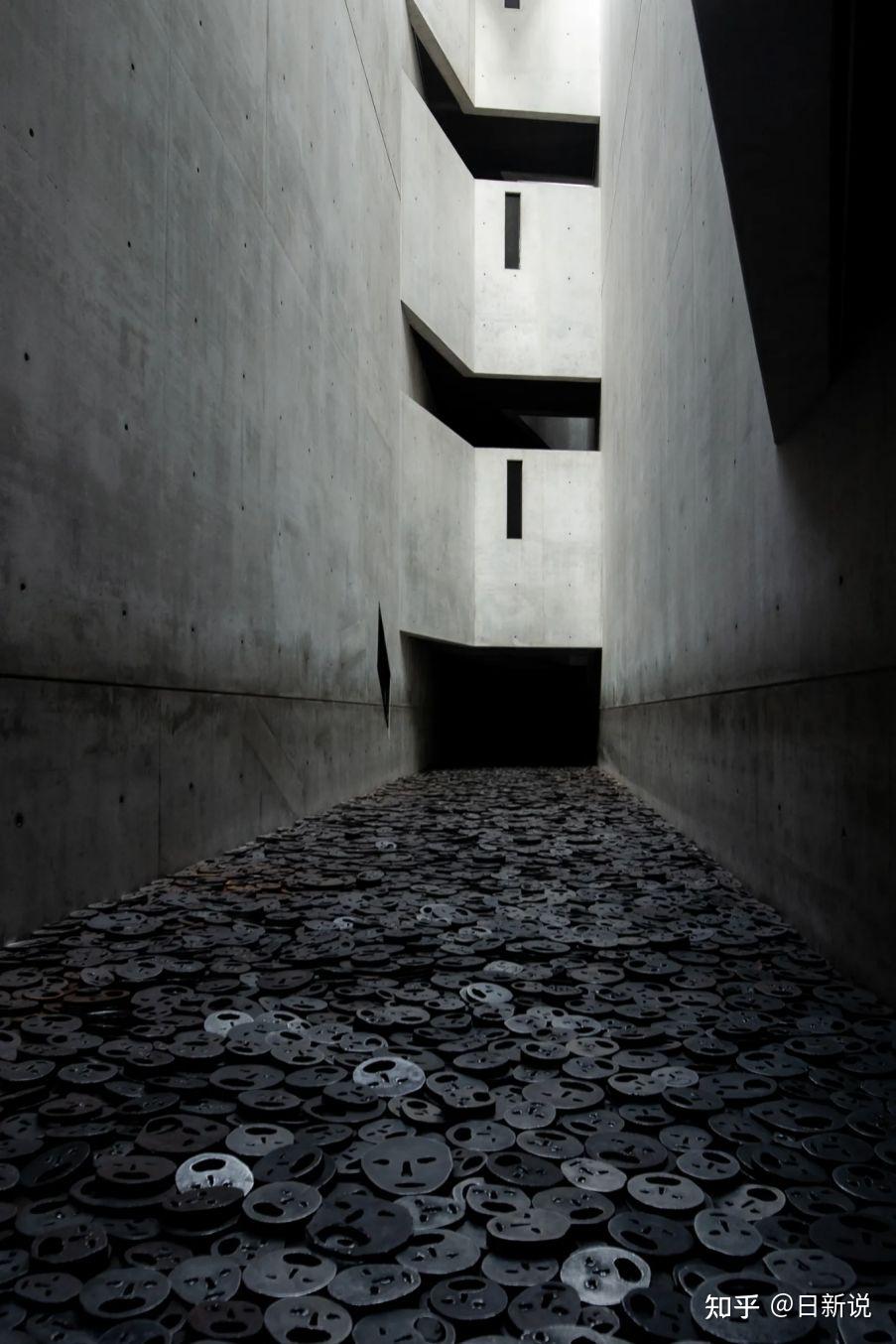 这里也有以色列艺术家梅纳谢·卡迪什曼(Menashe Kadishman)名为“落叶(Fallen Leaves)”的装置作品,它由一万多枚刻有眼睛和嘴巴的铁片组成,就像孩子画的尖叫脸的铸件当你踩着这些脸走时,它们会发出叮当声,就像脚镣,又像步枪的枪栓柄。