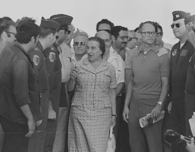 图8.在美军飞机空运物资期间,以色列总理戈尔达·梅厄夫人现身特拉维夫的卢德机场(现改名为本-古里安国际机场),时间可能是1973年10月29日前后