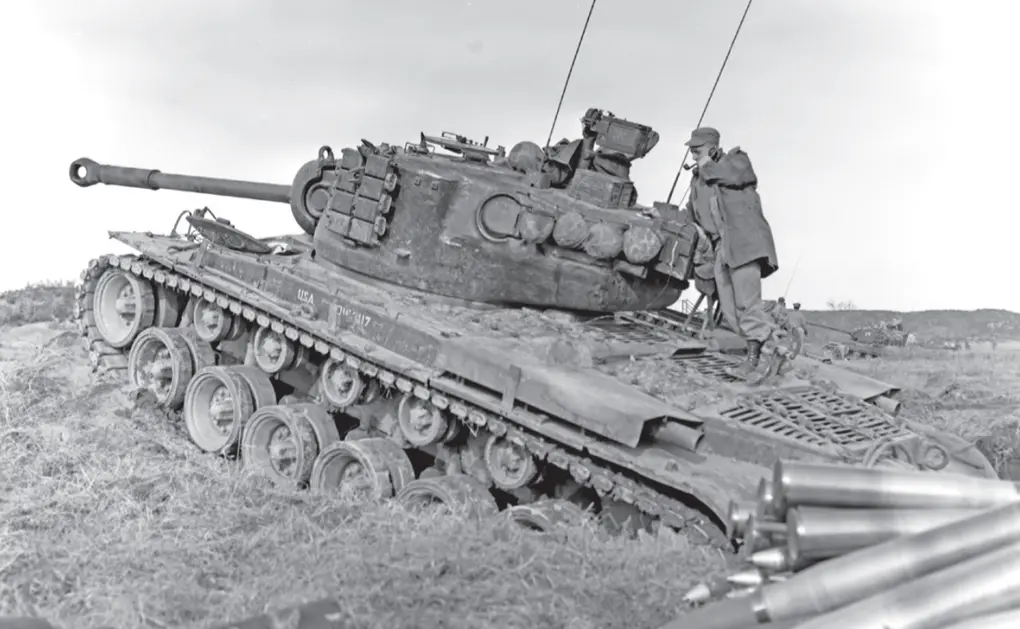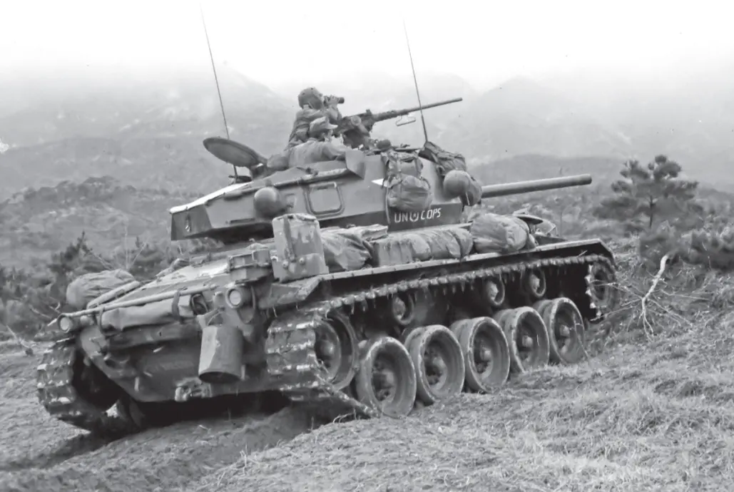 随着朝鲜半岛战局逆转,“联合国军”越过三八线向北反推,但朝鲜战争坦克战的高潮已经过去。到1950年底,美军在朝鲜战场部署的坦克已达1326辆,包括138辆M24、679辆M4A3E8、309辆M26和200辆M46。在余下两年多的战争中,美军坦克极少遭遇中朝坦克的挑战,主要承担火力支援任务。
