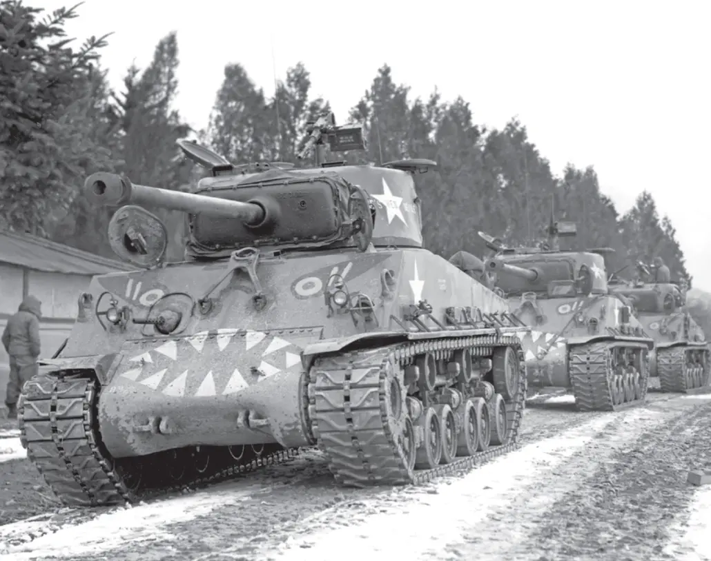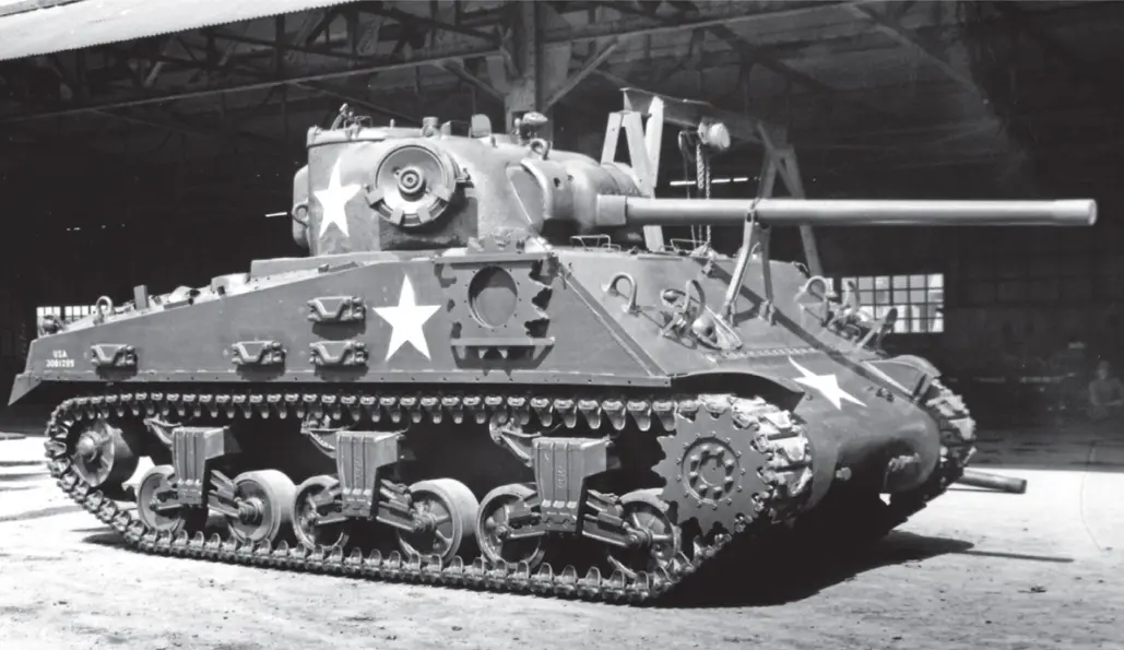 ■朝鲜战争爆发后,美军在日本的军需仓库中翻新的M4中型坦克,配备了76毫米长身管坦克炮。