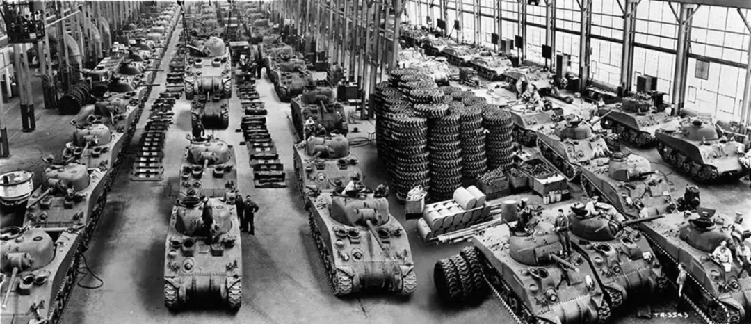 ■二战时期,位于美国底特律的M4中型坦克生产流水线,战争期间美国生产了近10万辆坦克和坦克歼击车。