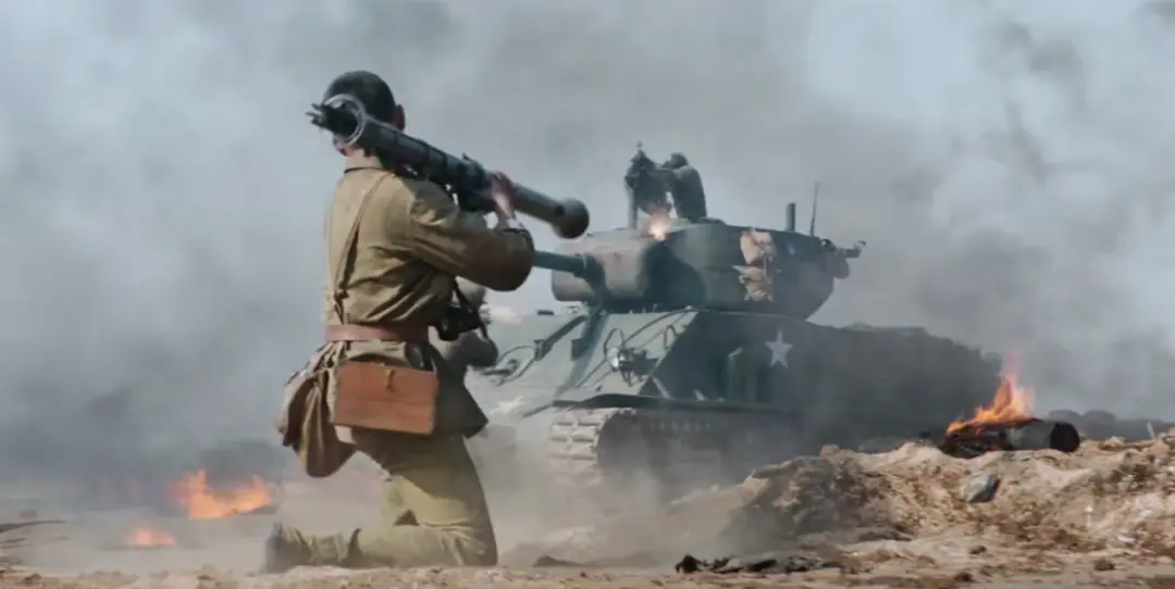 ■《志愿军:存亡之战》中志愿军战士与美军坦克进行近距离搏斗的镜头。