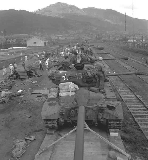 鉴于朝鲜前线急需坦克支援,美国陆军部于7月10日向3个坦克营发出紧急动员令,它们分别是第6、70和73坦克营,这是当时美国国内仅有的能够随时投入战斗的坦克部队。这三个营个个背景不凡,第6坦克营是陆军中唯一装备新型M46坦克的部队,堪称换装新装备的种子部队,而第70、73坦克营分别是诺克斯堡装甲兵学校和本宁堡步兵学校的教导部队,可以说美军将装甲兵的绝对精华全部压上了朝鲜战争的赌局。上述三个营于7月23日由旧金山登船横渡太平洋,于8月7日登陆釜山。此外,大批封存坦克也被解封重新服役,运往远东充实前线部队。