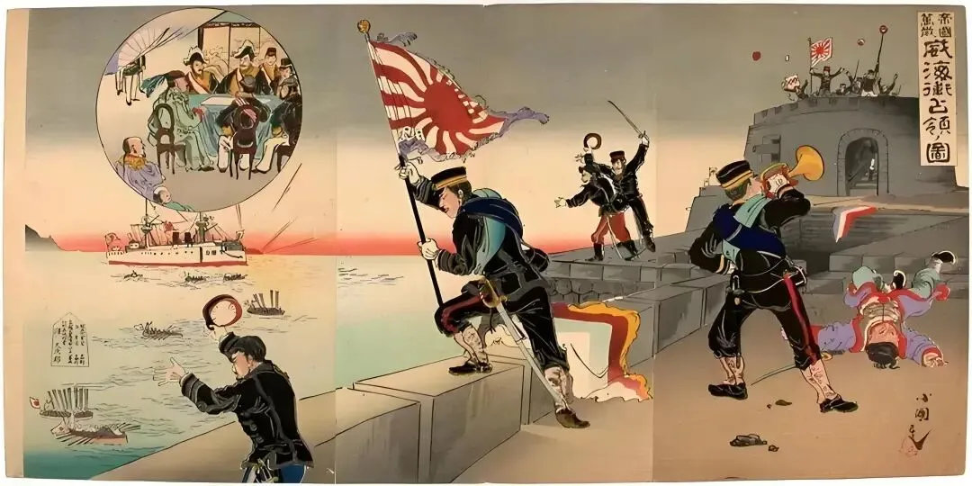 在1月20日至2月上旬进行的威海卫之战中,孤立无援的北洋舰队几乎全军覆没。此役结束后,日本各大报纸连续多日以头版头条进行报道。