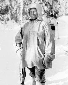 芬兰“神枪手”西蒙·海耶,他在不到四个月的时间里,用芬兰版的莫辛纳甘步枪射杀了542名苏军,人称“白色死神”