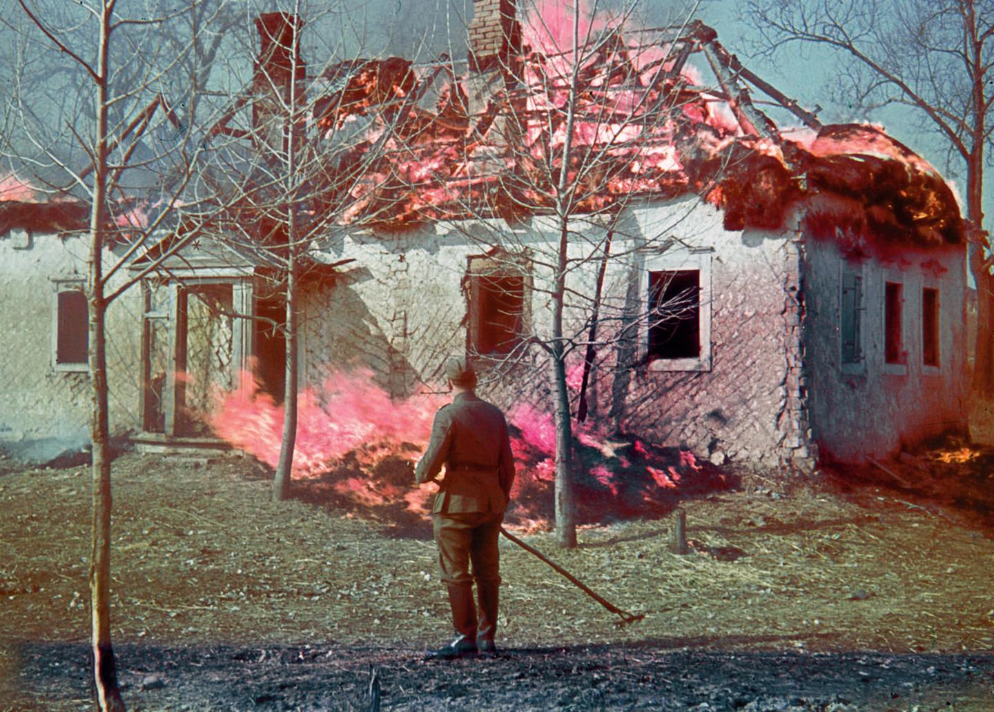被发现支持游击队的村庄常常被烧成废墟。大多数俄国民居的屋顶要么是木瓦,要么是茅草,极易化为灰烬