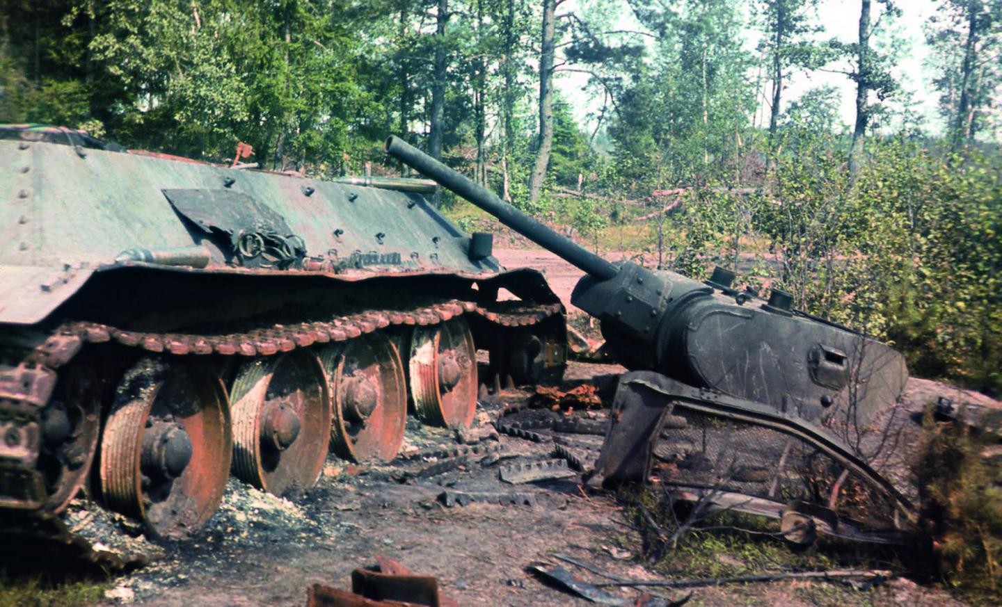 直到那时我才注意到,在我们的右翼隐蔽着4辆伪装良好的Ⅳ号坦克。它们就像在操练场上一样开火射击。我第一次看到坦克被击中燃烧,或者更具体地说,是T-34的炮塔被掀飞到空中。其余的敌人很快撤退了,只留下7辆坦克残骸和大约80具遗体。