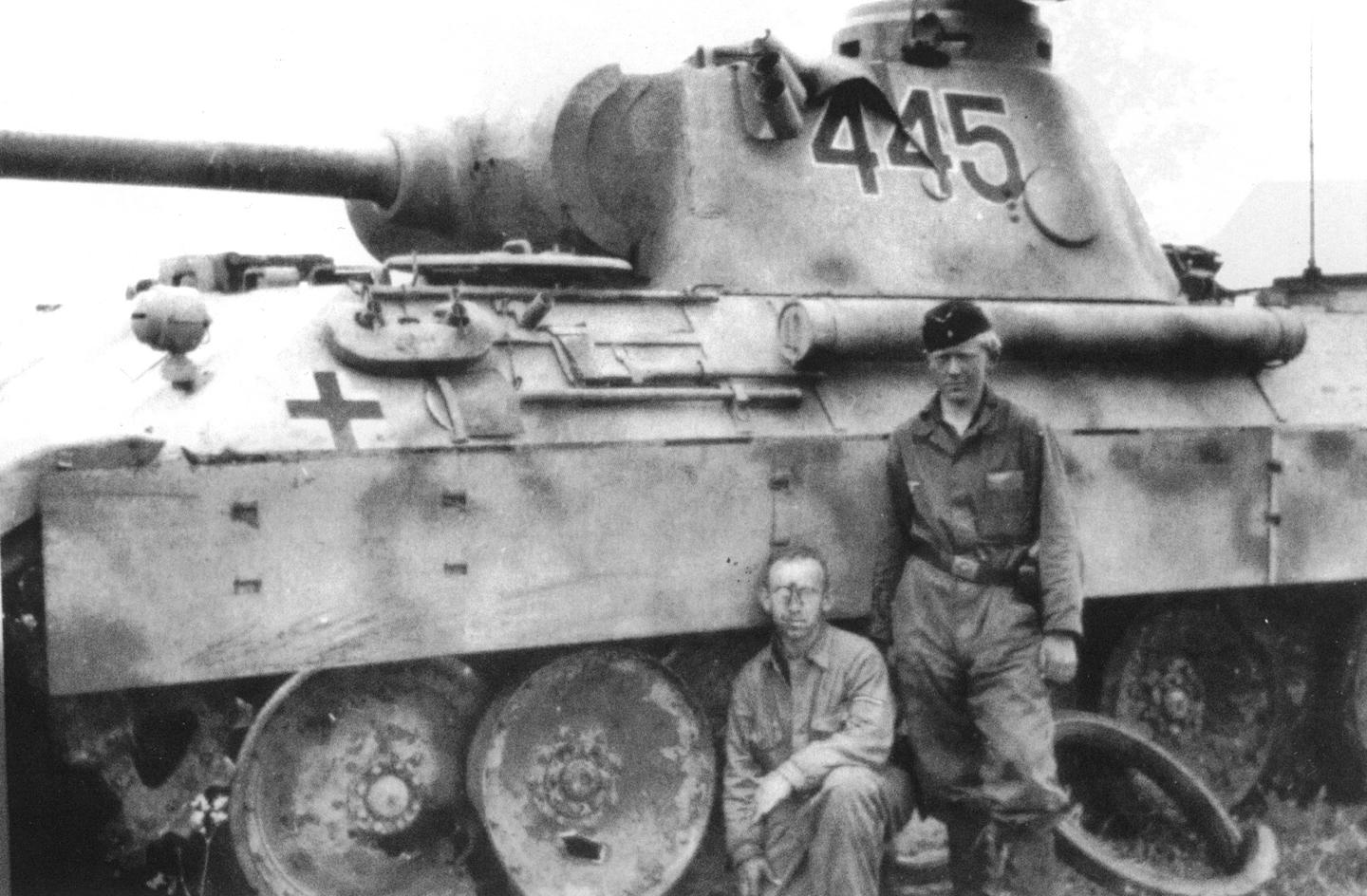 摄于“堡垒”行动期间,第51装甲营第4连的445号“豹”式的乘员与坐车的合影,照片中清晰可见两名乘员因持续不断的作战而疲惫不已的面容,此外,从负重轮的情况来看,445号同样伤痕累累,一些负重轮甚至完全失去了原有的橡胶轮缘。