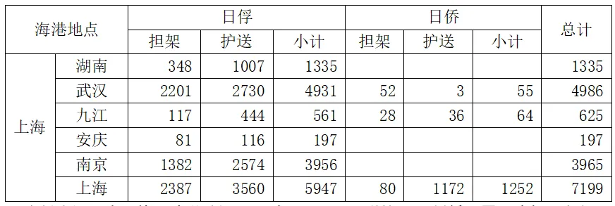 1946年2月6日《中国战区遣送计划》进一步规定,日俘、日侨在上船前一律接种伤寒疫苗,遣送船也要消毒,并规定日俘侨所需医疗船只的数量及地点,其中上海港口包括从上海出境的长江中上游地区,具体如下: