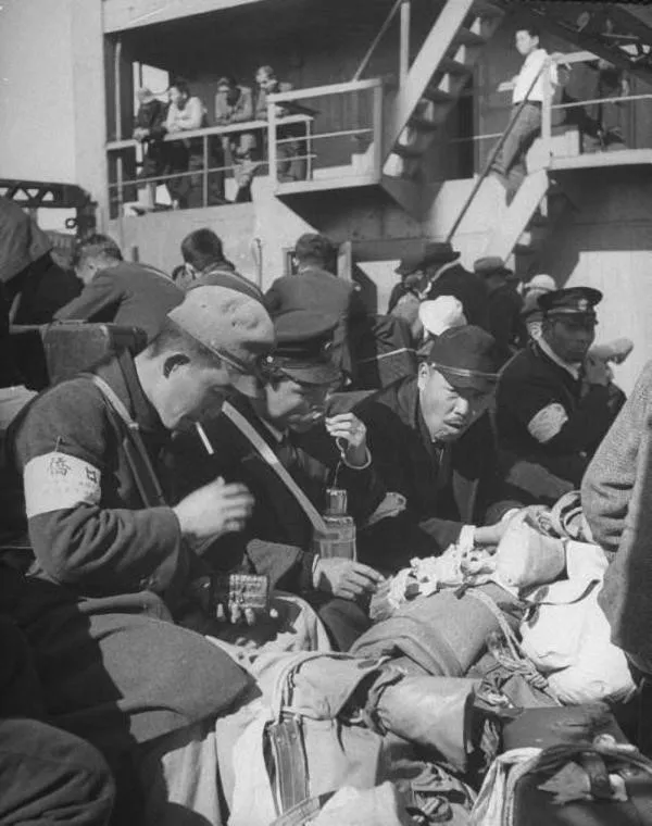 1945年12月4日8时起,上海虬江码头,2185(原定2229名,38名因死亡、患病或生产而弃权登轮、6名因有战犯嫌疑被扣留)日俘侨大包小包地步行至码头,蹒跚上了甲板,回头看了眼曾洒下汗与泪的上海,想到终于能够回归故土,心情复杂无似。中国政府对遣返十分重视,日侨管理处处长王光汉、副处长邹任之等主管人员均到场巡视,以保证第一次遣返的顺利进行。待日俘侨全部登船之后,下午1时半左右,明优轮启碇东航。随着轮船一并远去的,还有日侨们灰心愤懑的感情:
