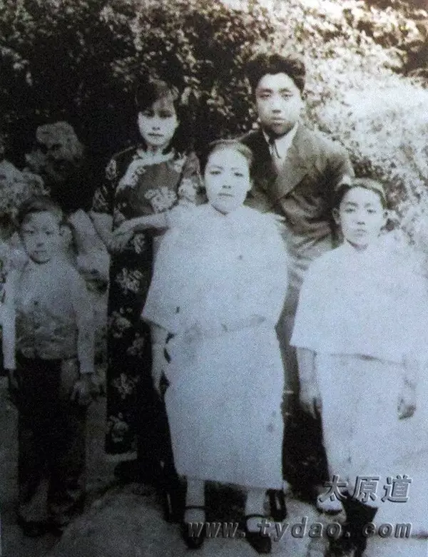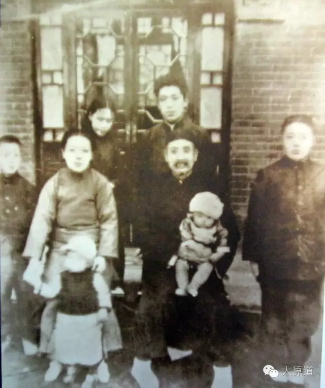 阎锡山家庭照,前排两个幼儿为孙子树楹与孙女树榕