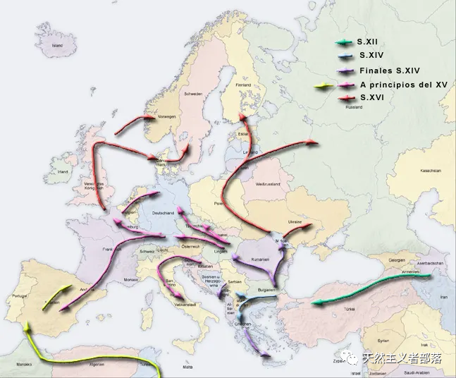 1414-1417 年,吉普赛人首次出现在瑞士、匈牙利、德国和西班牙。在此期间,他们带着来自神圣罗马帝国皇帝西吉斯蒙德的安全行为许可(类似于护照)四处旅行。西吉斯蒙德死后,吉普赛人带着教皇的安全通行许可信环游欧洲。来自西吉斯蒙德的信件是合法的,但所谓的教皇信件是伪造的。