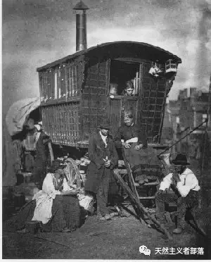 在维多利亚时代的英格兰,我们看到吉普赛大篷车队的出现,宿营拖车用驴或骡子牵引。游荡的吉普赛人仍然住在帐篷里——即使在冬天也是如此。吉普赛人此时被称为修补匠、陶工、篮子制造商、刷子制造商和廉价杰克。也是在十九世纪,他们被称为旅行者。
