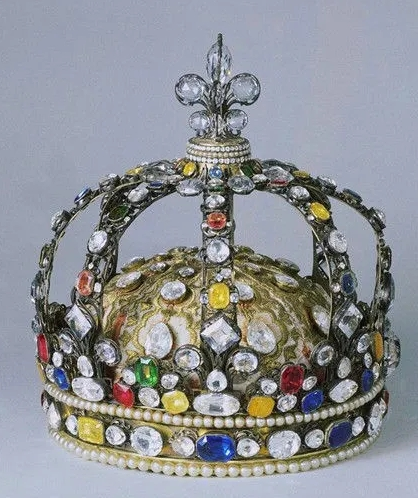很难想象将近300年前这顶王冠就镶嵌着282钻石,237颗天然珍珠,还有大大小小的蓝宝石,红宝石,祖母绿等64颗贵重彩色宝石,包括摄政王钻石在内的多颗稀世名钻,都闪烁在王冠之上,其价值已然无法估量。
