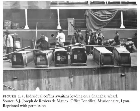上海码头等待装载的棺材