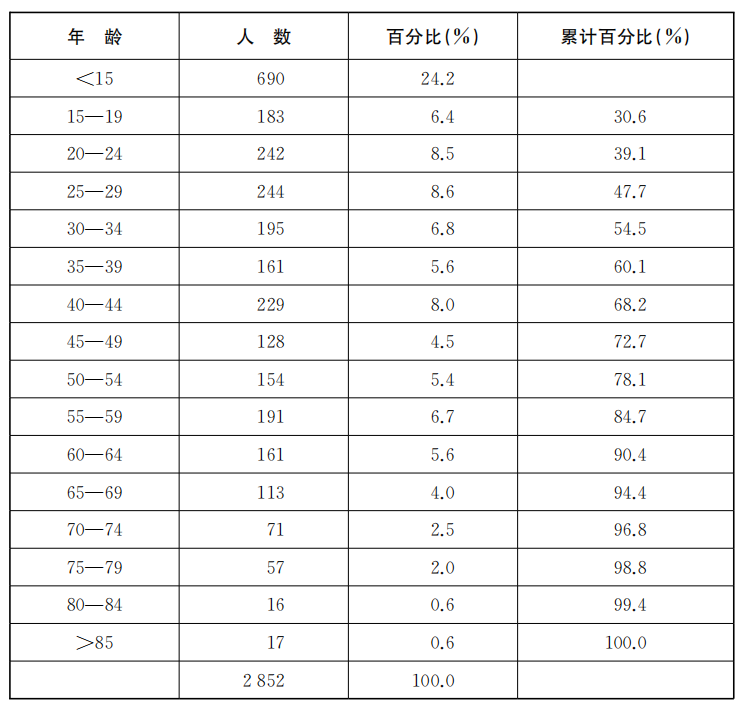 本研究只使用了湖州会馆的数据,因为其覆盖的样本数量非常多,从1933—1937年中日全面战争之前的时期,总计有2845人的灵柩被记录在案。这并不是说湖州会馆的数据是一个人口统计的代表性案例,它所代表的是人口中的一部分湖州人在上海离世并授权会馆处理死者的例子,但是它反映了一个足够庞大的人群,我们所获知的其死亡年龄可以提供一些关于上海生与死的信息。(详见表1.1)