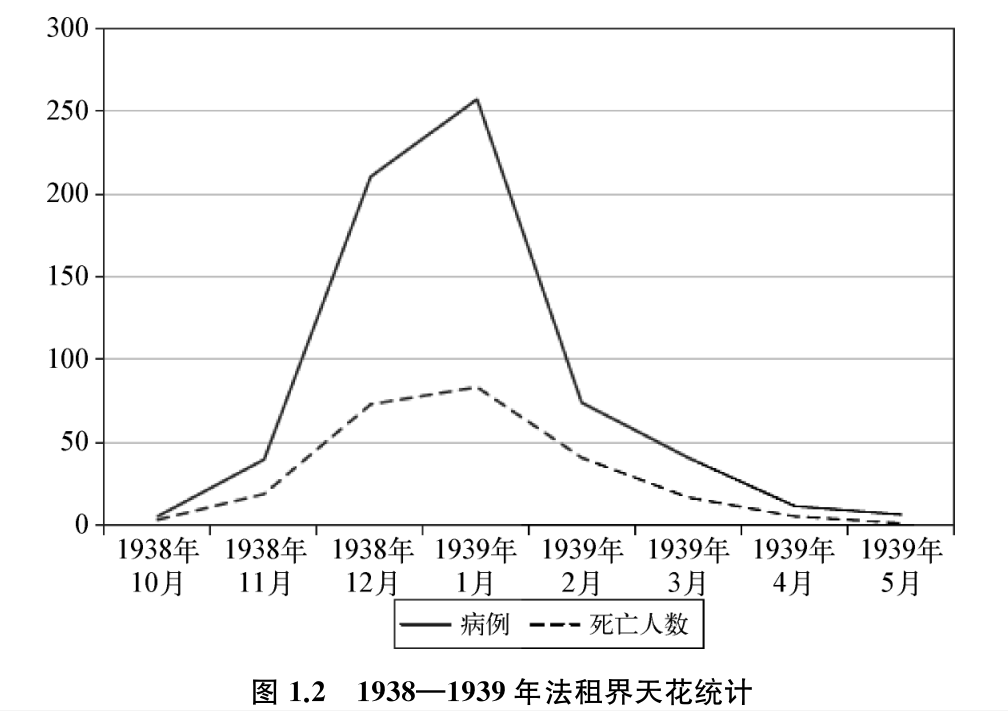 在法租界中,天花最终感染了645人,其中外国人22人、中国人623人。公共租界不完整的数据显示1月初的病例是1479人。外国人中死亡人数不多,但中国人的死亡率是38%。大部分人死于1938—1939年2月的传染病高峰时期。