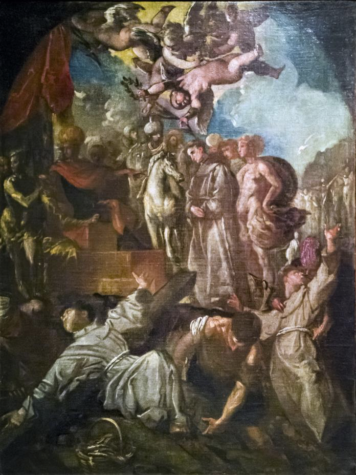 图11是意大利画家弗朗切斯科·马菲(Francesco Maffei,1605-1660)的作品,要说明的是:26人中不都是方济各会传教士与信徒,其中有3人属于耶稣会。