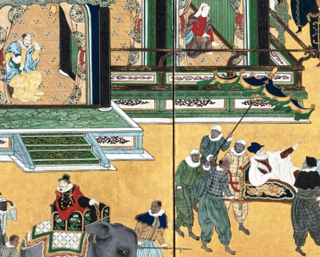 图16 狩野内膳《南蛮人渡来图》局部(c.1600) 现藏里斯本古代艺术博物馆
