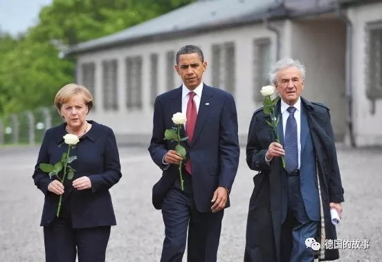 2009年6月5日德国总理默克尔陪同美国总统奥巴马参观布痕瓦尔德集中营,在跨入 JEDEM DAS SEINE 铁门时,奥巴马恭请默克尔先行。之后默克尔奥巴马与布痕瓦尔德幸存者,诺贝尔和平奖得主埃里·维瑟尔(Elie Wiesel)向亡灵献花,自始至终,默克尔神色凝重肃穆。1970年,默克尔的前任威利·勃兰特在华沙突然向犹太人起义纪念碑下跪;1985年,德国总统理查德·冯·魏茨泽克在纪念纳粹德国投降四十周年演说时说到,德国的投降日也是德国人民的解放日。与这些伟大的前辈相比,默克尔讷于言,亦不敏于行。然而,当2015年难民危机在向人道灾难演变之际,德国却突然向千百万难民开放边境,谁能知道,当默克尔在决定打开国门之际,是不是想到了这一扇门,这扇曾经对成千上万无望的人们永远紧锁着的,镌刻在其上的,在德意志记忆中永远挥之不去的那句 JEDEM DAS SEINE 呢?