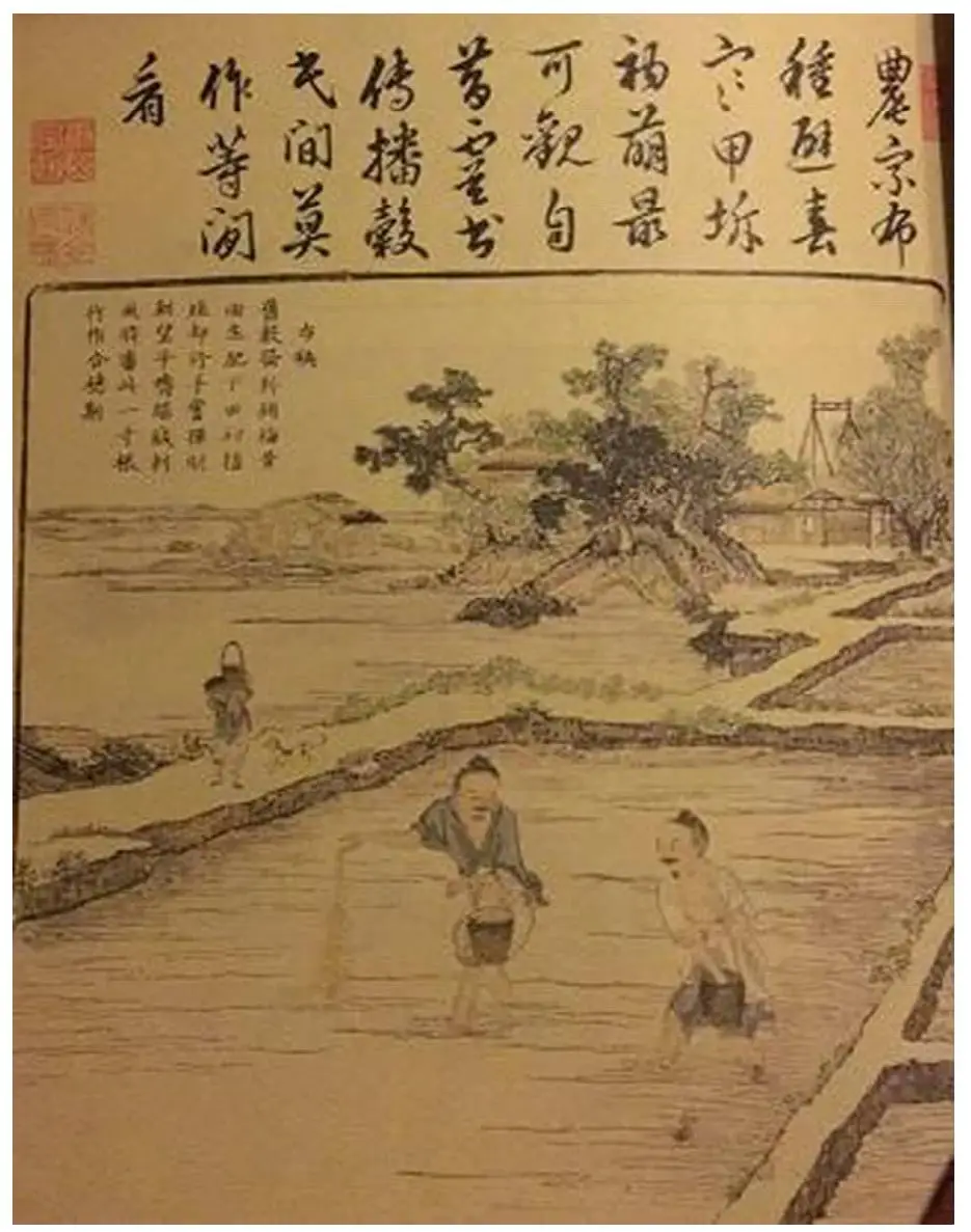 图8 胤禛《耕织图》第六幅“布秧”