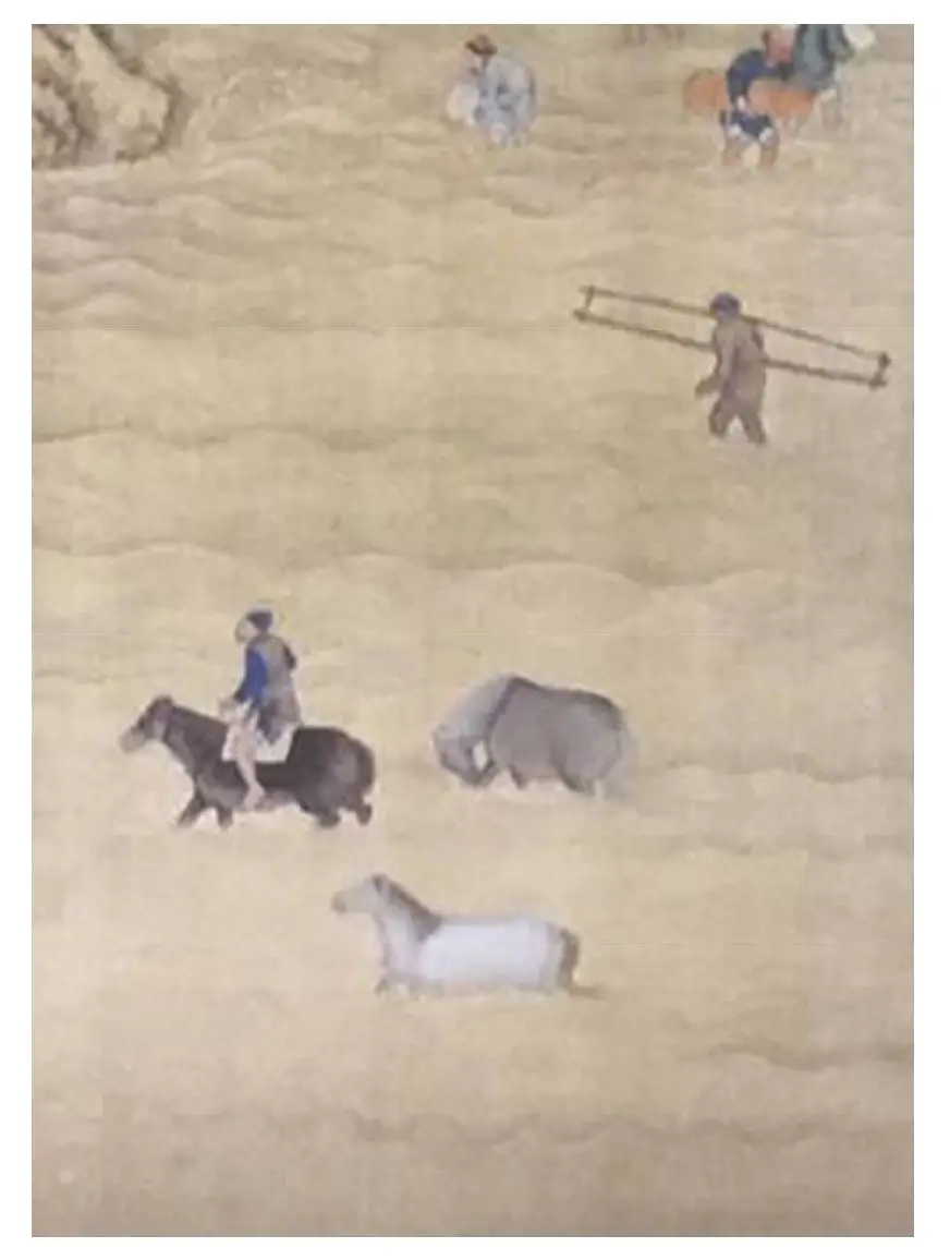 根据46幅耕织图中人物的发型和服饰,我们可以得出以下结论:康熙《耕织图》总共46幅105图中,出现人物(包括妇女、儿童、婴儿)总共245人,耕图人物140人,织图人物105人。在这245人中,成年男性132人,其发式皆为束发、锥髻式,没有一人是满式剃发辫发形象。儿童多为中原儿童锅盖头式,妇女全部是明代对襟或长裙装。