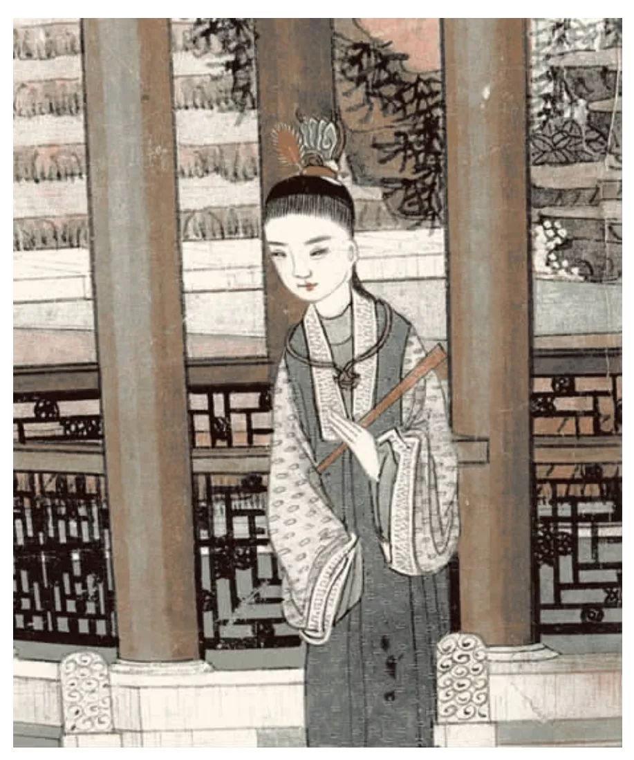 根据朱敏对《大观园图》的考证,该画为嘉庆以后清代中晚期作品。画作体现了清人对康乾时期社会生活的想象,贾宝玉被描绘为“束发嵌宝紫金冠,穿着紫色箭袖,束一条红色长穗宫绦,外罩石青缎褂”。显然,束发与戴冠都属于汉族发饰,也符合《红楼梦》小说对人物的描述。