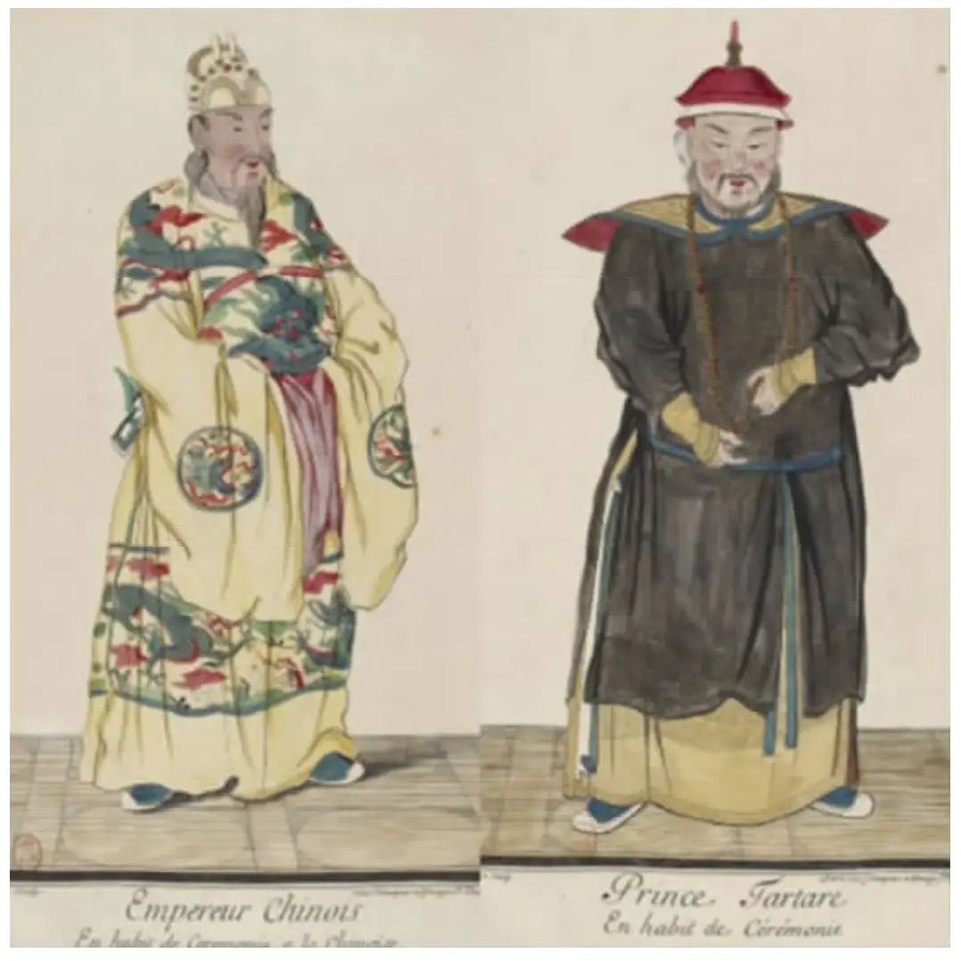 图17 汉服皇帝与满服大臣(白晋《清国人物服饰图册》)