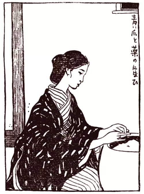 他们同样在来不及认清自己的优长和确定自己艺术走向的时候,被涌入画坛的西洋画风裹挟着扑入了油画的修习。在学习中否定,在否定后抉择。这一过程,梦二用了整整四年,当毅然舍弃油画转投插画之后,他说:“想要表现绘画内部的感伤,未必非油画不可,我今后要画的插画,便是无声的诗。我不愿像日本的某某画师那样,成为用预定的颜料、预定的颜色和构图,大幅度地肆意填涂的健全派。我想要将单纯的官能感受用单纯的线条原原本本地再现出来。”