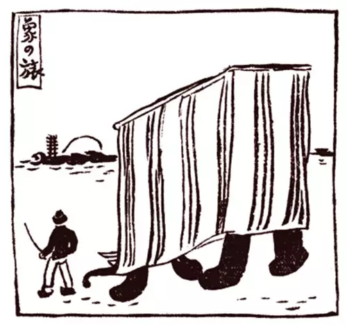 梦二的一生,几乎大半时间都在旅途,而关于旅途的描绘,也是梦二“无声的诗”中永恒的复沓。他渴望旅行、赞美旅行、也哀叹旅行。对于梦二来说,似乎一切都能诱他启程:幼时听到的《阿波鸣门》故事中流离失所的悲哀,会激发他漂泊四方的冲动;街角点心店飘出的点心甜香,引他追寻梦中的南洋森林;甚至一个个因急于买票而行色匆匆的旅人,也能催促他定下行程。