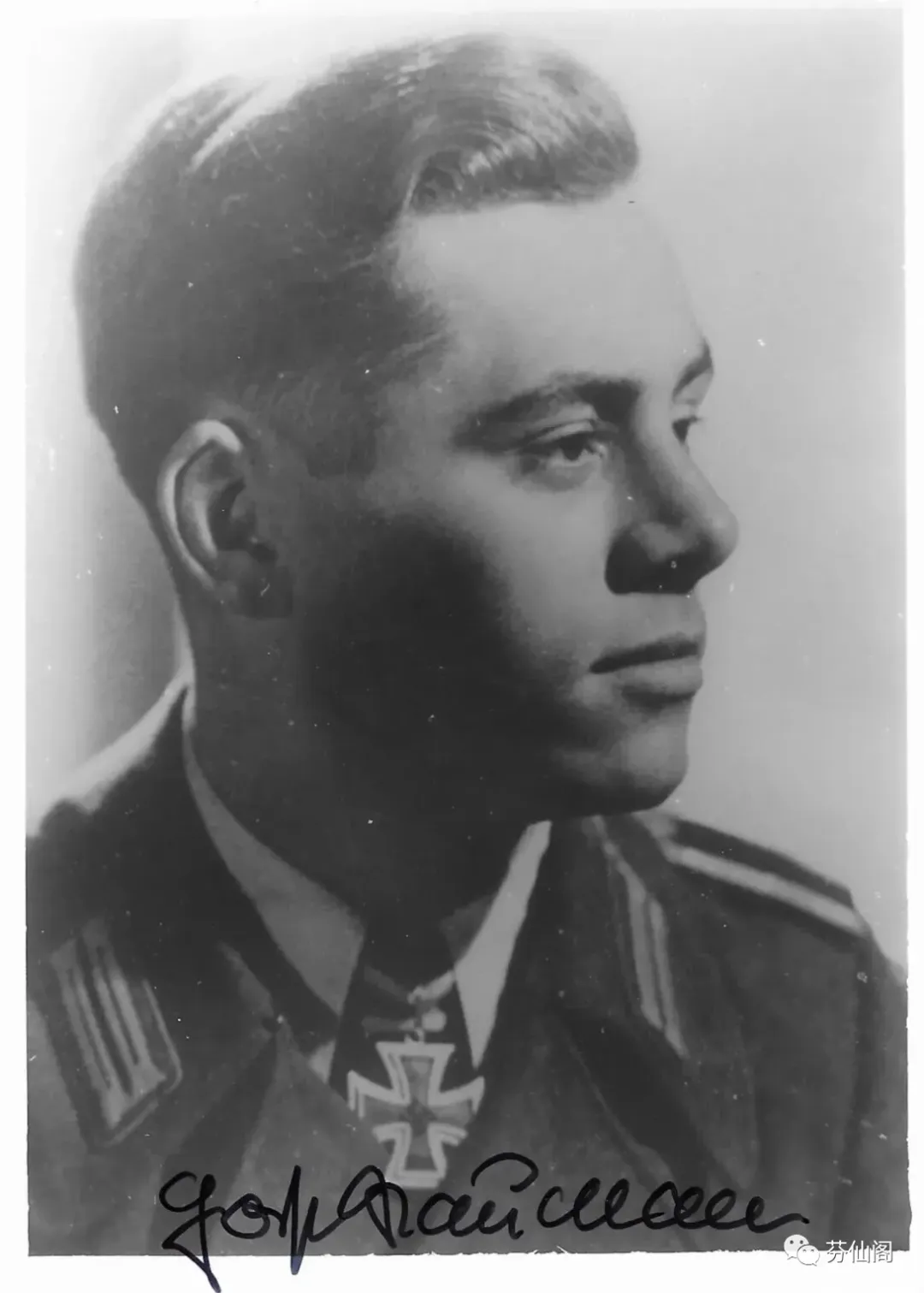 1944年8月3日,《德意志每周新闻(Die Deutsche Wochenschau)》第726期 播放了一段摄于诺曼底战区的影像,一位装甲指挥官的特写出现在影片第16分33秒至45秒之间,旁白如此解说道: