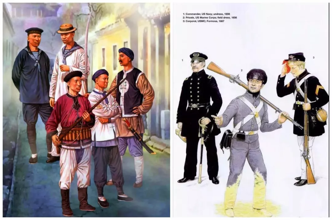 左图:各国海员和菲律宾人是洋枪队早期核心,右图:少量美国士兵“开小差”加入了洋枪队