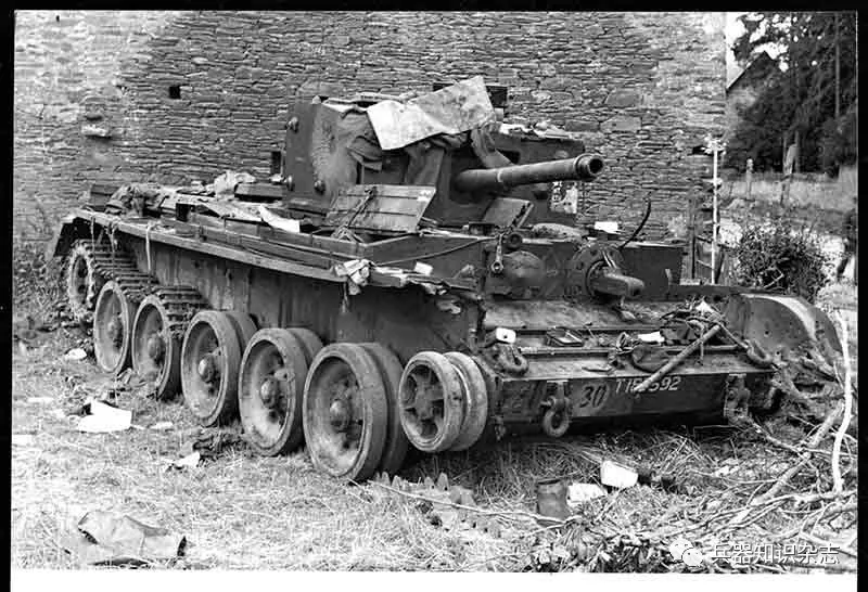 ▲ 一辆英国“克伦威尔”式坦克与德军“虎”式坦克相遇后被击毁。英国与美国的坦克都敌不过在诺曼底战场巡游的德国“豹”式和“虎”式坦克。但盟军压倒一切的空中优势则使盟军在战役中处于有利地位