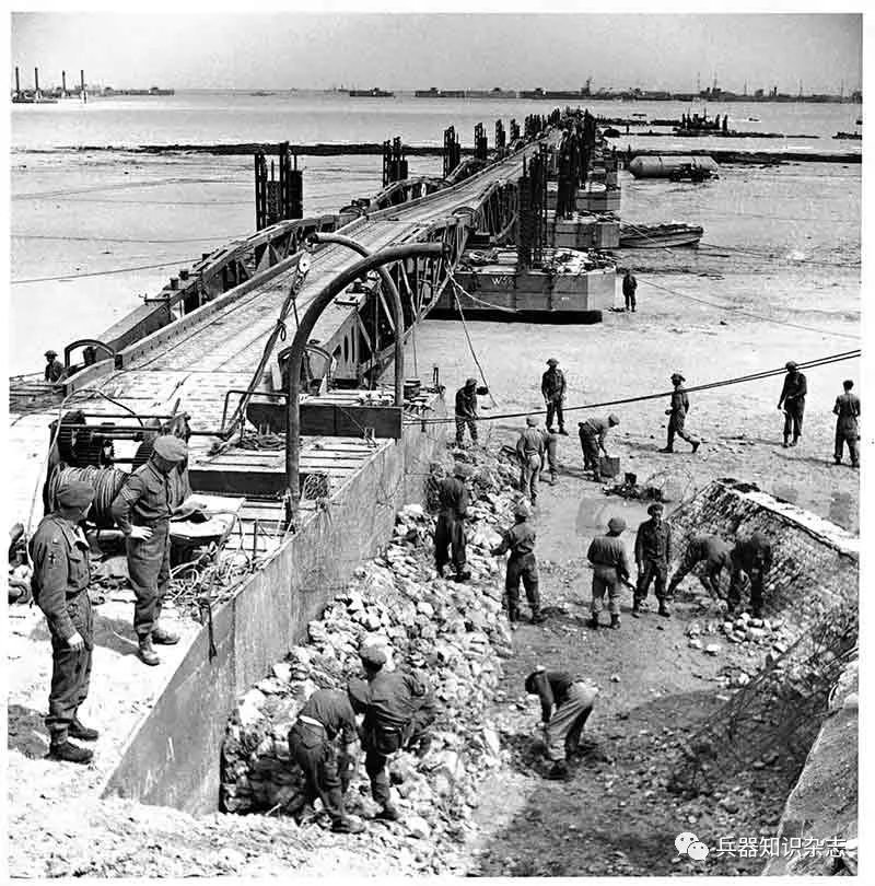 盟军的后勤计划人员知道,向露天海滩运送人员和物资将会是一件危险且难以完成的事,因为很难提供足够的军事力量来保卫海滩,更不用说打出滩头堡向内陆突破了。成功的关键在于尽快使“桑树港”到位。最初的600只沉箱和仓库船于6月7日被放置在英军区域的阿拉曼什之外和美军区域的“奥马哈”海域…………人工港,有些军迷也许都知道,而且与“篱笆”无关,咱们也长话短说了…………