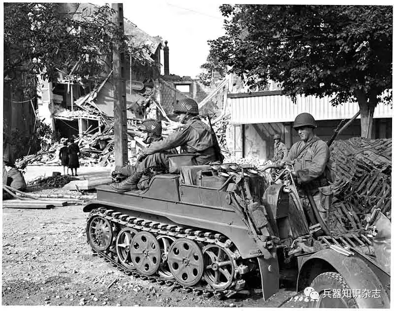 ▲ 德国党卫军装甲旅装备一种反坦克火箭发射筒。德军经常越过布满树篱的土埂,对美军“谢尔曼”坦克易损的底部进行攻击