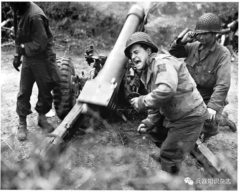 ▲ 博卡日的美军炮兵正在发射炮弹。大雨加上厚密的树篱常常给相邻部队的无线电联系造成很大困难,甚至联系不上,这给部队之间的协同作战造成了严重的麻烦