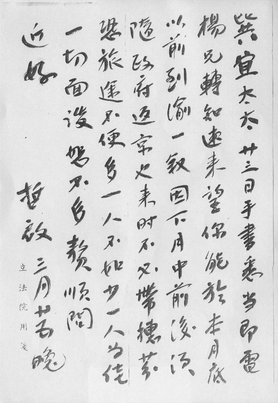 孙科收到刘攻芸回信后,再次致函:“攻芸局长吾兄大鉴:接读大函,藉悉一是该项颜料既非敌产,尚希早日发还原主为感!专此,即颂勋安!”此函也无标点符号,也未具名,但用立法院用签,刘攻芸局长当然知是何人,物主虽未用蓝妮真名,这也是当年有钱人常用的办法,以免露财遭害。