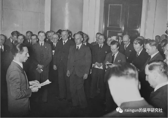 上图:纳粹二号人物赫尔曼·戈林在向外国媒体代表发表讲话,时间是1933年。