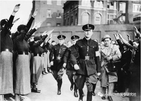 上图:英国法西斯运动头子奥斯瓦尔德·莫斯利正接受其追随者的敬礼,照片摄于1936年。莫斯利领导的“黑衫军”运动已被证明是一场充满暴力的尴尬闹剧。