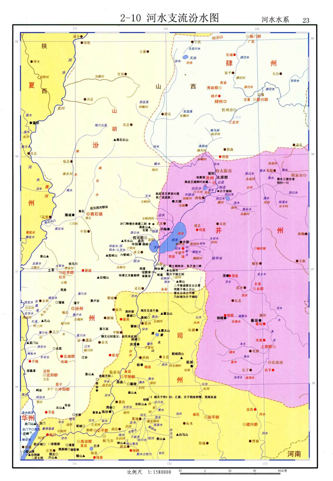河水支流汾水图。来源/张布天 《水经注地图集(上)》