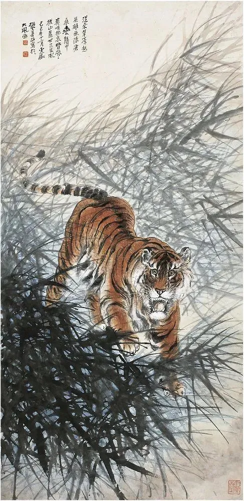 張大千(1899—1983),又名爰,字季爰,号大千,别号大千居士,四川省内江市人。早期专心研习古人书画,特别在山水画方面卓有成就,后旅居海外,画风工写结合,重彩、水墨融为一体,尤其是开创泼墨与泼彩,发展了中国画新的艺术风格。由于其技法独到,创立了名闻遐迩的大风堂画派,俗称“大千画派”。