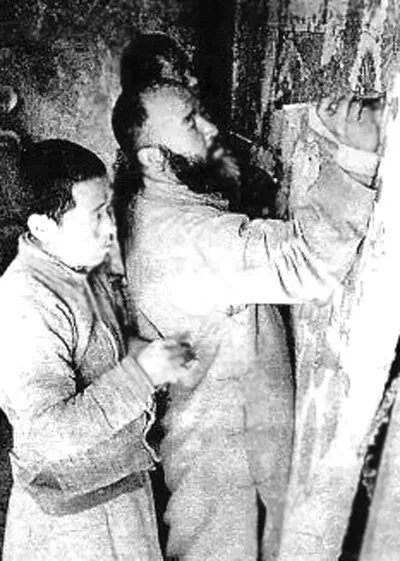 張大千實地踏訪敦煌莫高窟,临摹壁畫。