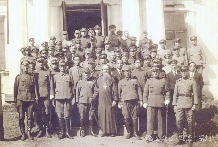 ■浅野部队军官(前排)与高级士官的合影,军官中有日本人,也有俄罗斯人。