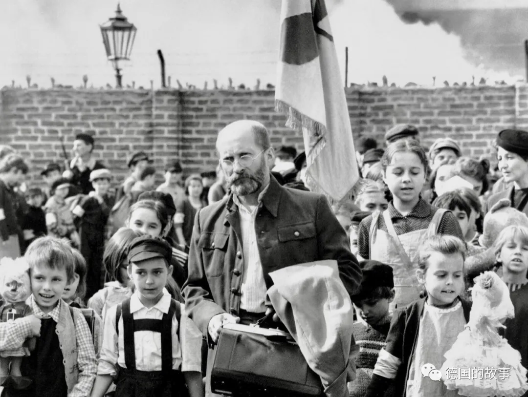 科扎克领着孩子们走向火车,维持秩序的警察自发让出一条道路,站在两旁向科扎克作出致敬的姿势。德国人向拉姆巴打听此人是谁,拉姆巴突然泪如雨下,无法言语。广场上滞留的人群中此起彼伏响起悲痛的哭号声。科扎克一步一步走向车厢,头颅高高扬起,两手牵抱着孩子,他的眼睛直视前方,用他那充满个性的眼神,仿佛在凝视着什么,此时此刻他看到的应该就是他向孩子们许诺过的那远方的草地溪流和森林。