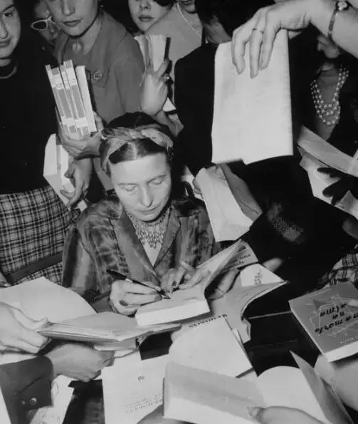 1949 年波伏娃的《第二性》在法国出版,波伏娃在书中以存在主义的思维提出了这个著名的观点,这句话的进一步解释是:女人作为妻子和母亲的命运,是男性硬安在她们头上的,是用来限制她们自由的。这一观点犹如炸弹,震动了整个社会。