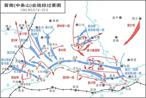 以中条山根据地为例,国民党军从开始就大力建造防御工事,企图凭借天险力保不失。1941年5月,日军调集六个师、两个混成旅和一个骑兵旅,从三面围攻中条山。